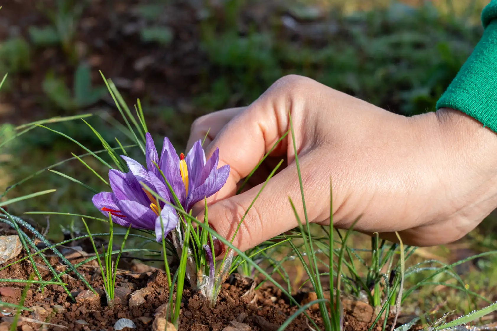 Tra ottobre e novembre i fiori viola del crocus sbocciano all'alba. Ogni fiore vive solo un giorno, rendendo il momento della raccolta prezioso e delicato.